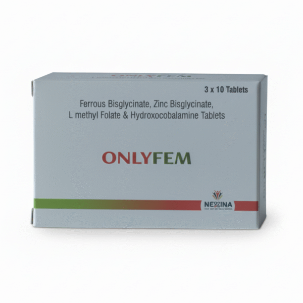 Ferrous Bisglycinate 60mg, Zinc Bisglycinate 15mg, L methyl Folate 2mg, Hydroxocobalamin 200mcg Tablets