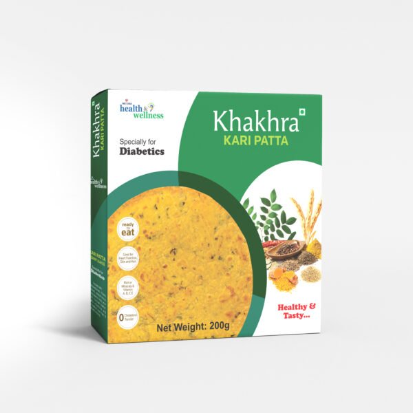 Nexina Health and Wellness Kari Patta Khakhra is a delicious, cholesterol-free snack specially formulated for diabetics. Made with Fresh Curry Leaves, Kari Patta Juice, Wheat Bran, and Jowar Flour — it is a crispy, ready-to-eat snack packed with fibre, flavour, and the traditional goodness of Indian kitchen ingredients. 200g | Vacuum Packed | Healthy & Tasty.